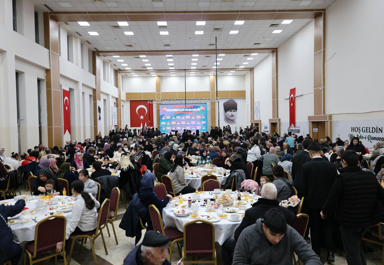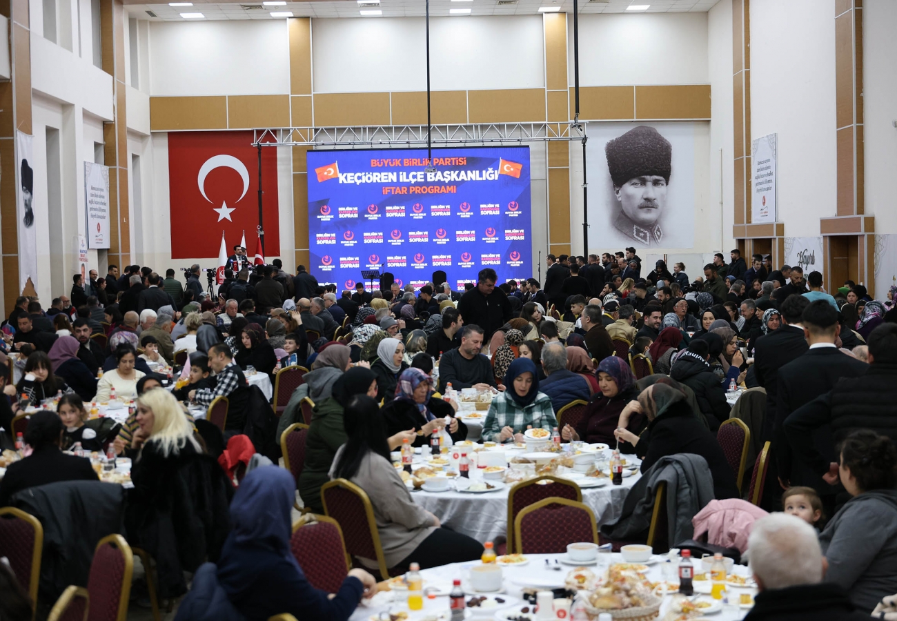 Keçiören Belediye Başkanı Dr. Mesut Özarslan, Büyük Birlik Partisi (BBP) Keçiören İlçe Başkanlığı tarafından Mevlana Kültür Merkezi’nde düzenlenen iftar programına BBP Genel Başkanı Mustafa Destici ile birlikte katıldı. Keçiörenli çok sayıda vatandaşın katıldığı programda birlik ve kardeşlik mesajı verildi.
