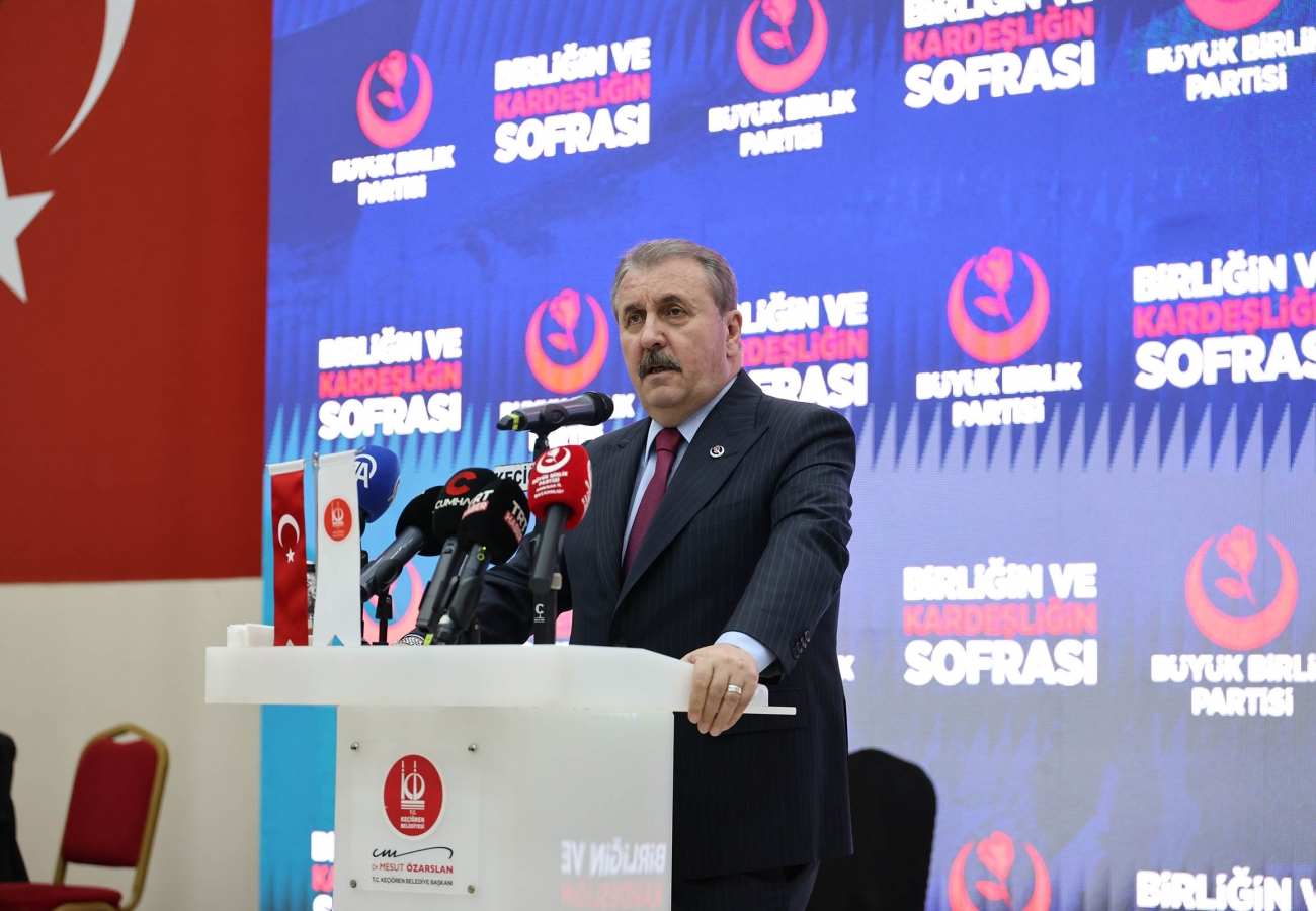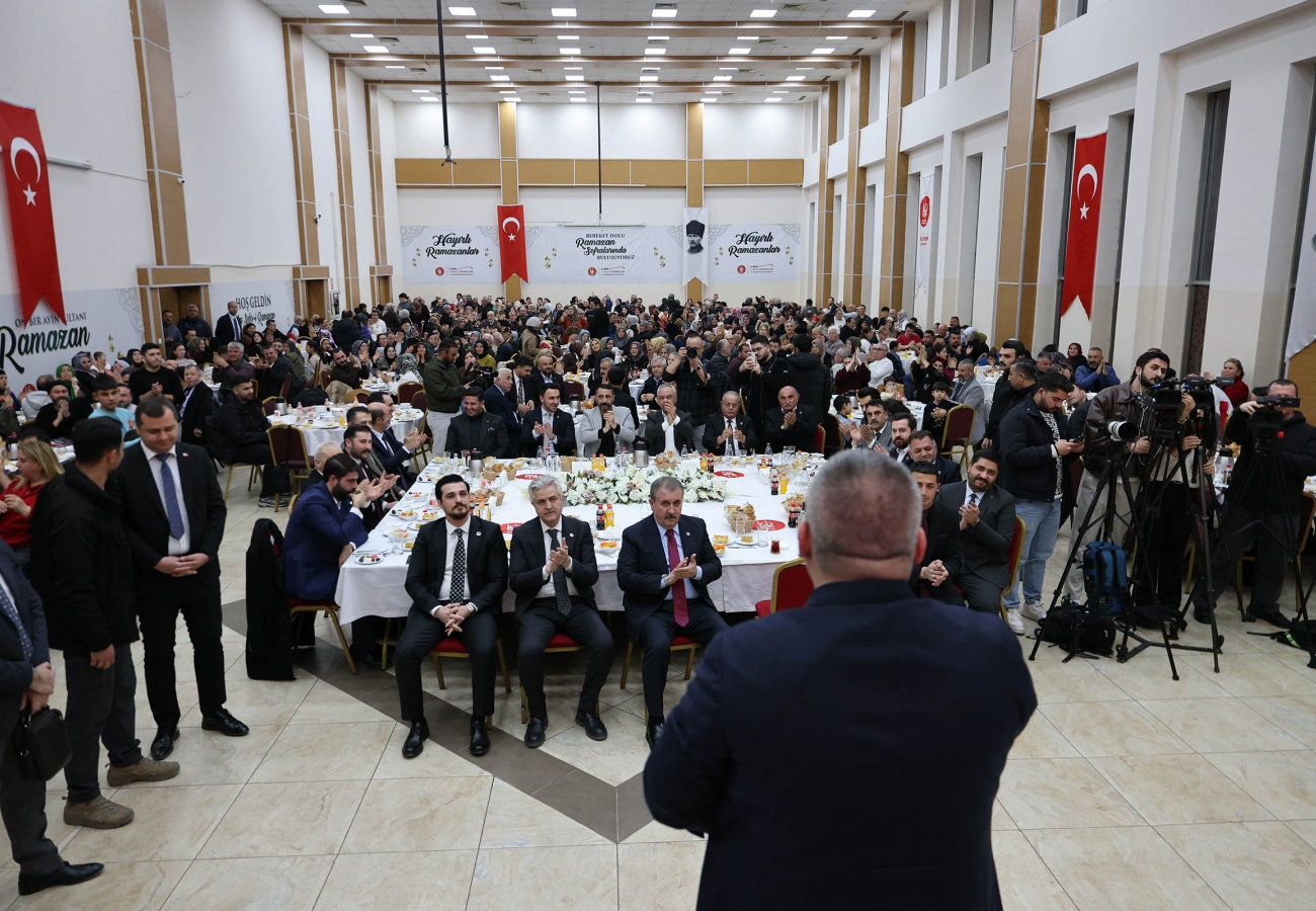 BBP Genel Başkanı Mustafa Destici katılımcılara hitaben yaptığı konuşmada İslam dünyasında ramazan ayını zor şartlarda geçiren Müslümanları hatırlatarak şunları söyledi: “Doğu Türkistan’dan Filistin’e, Kafkaslardan Türkmen eline, Myanmar’a kadar hâlâ pek çok Türk ve İslam coğrafyasında kan ve gözyaşı akmaya devam ediyor. Gazze’deki kardeşlerimiz yıkık dökük binalar arasında ramazanı geçirmeye çalışıyor. Onun için duamız, niyazımız bu kardeşlerimizin işgalden ve zulümden kurtulması; tam bağımsız, hür bir şekilde yaşaması ve ramazanı idrak etmesidir. Bizler binli yıllarda Anadolu’ya gelmiş, burayı yurt edinmiş Müslüman Türkleriz. Büyük bedeller ödemişiz; büyük savaşlar yaşamış, büyük kahramanlıklar göstermişiz. Milyonlarca şehit vermişiz, milyonlarca gazimiz olmuş. Biz bu toprakları emlak ofisinden satın almadık. Ecdadın ve şehitlerimizin kanıyla vatan yaptık. Birisi topraklarımıza ortakçı çıkmaya kalkarsa bedelinin kan olacağını bilmelidir. Bu topraklarda bin yıldır Kürt’üyle, Türkmen’iyle, Çerkez’iyle, Boşnak’ıyla, Alevi’siyle, Sünni’siyle birlikte yaşadık. Buradan, Türkiye’ye parmak sallayanlara da sesleniyorum: Türkiye’yi başkalarıyla karıştırmayın. Türkiye ne Afganistan’a, ne Suriye’ye, ne Irak’a, ne Filistin’e benzer. Türkiye, vatanı söz konusu olduğunda canını ortaya koyan bir millettir. Rahmetli şehit liderimiz Muhsin Yazıcıoğlu’nun dediği gibi: ‘Biz kan dökmeyi seven bir millet değiliz ama gerektiğinde dünyanın şah damarını kesmesini de biliriz.’ Türkiye’ye parmak sallayanlar şunu bilsin: Türkiye’nin o parmakları da, arkasındaki güçleri de kıracak azmi, iradesi ve kararlılığı vardır. Keçiören Belediye Başkanımıza da ev sahipliği ve programımıza katılmasından dolayı teşekkür ediyorum.”