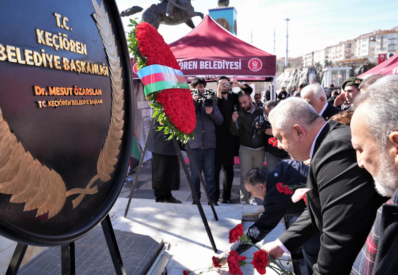 Keçiören Belediyesi ile Azerbaycan Cumhuriyeti Ankara Büyükelçiliği iş birliğiyle düzenlenen “Hocalı Soykırımı Şehitlerini Anma Töreni”, Kalaba Kent Meydanı’nda gerçekleştirildi. Törende, Azerbaycan’ın Karabağ bölgesinde 26 Şubat 1992 tarihinde Ermeni kuvvetlerinin gerçekleştirdiği saldırılar sonucunda işgal edilen Hocalı Kasabası’nda katledilen şehitler, dualarla anıldı. Her iki ülkenin şehitleri için saygı duruşunda bulunularak milli marşlar okundu.