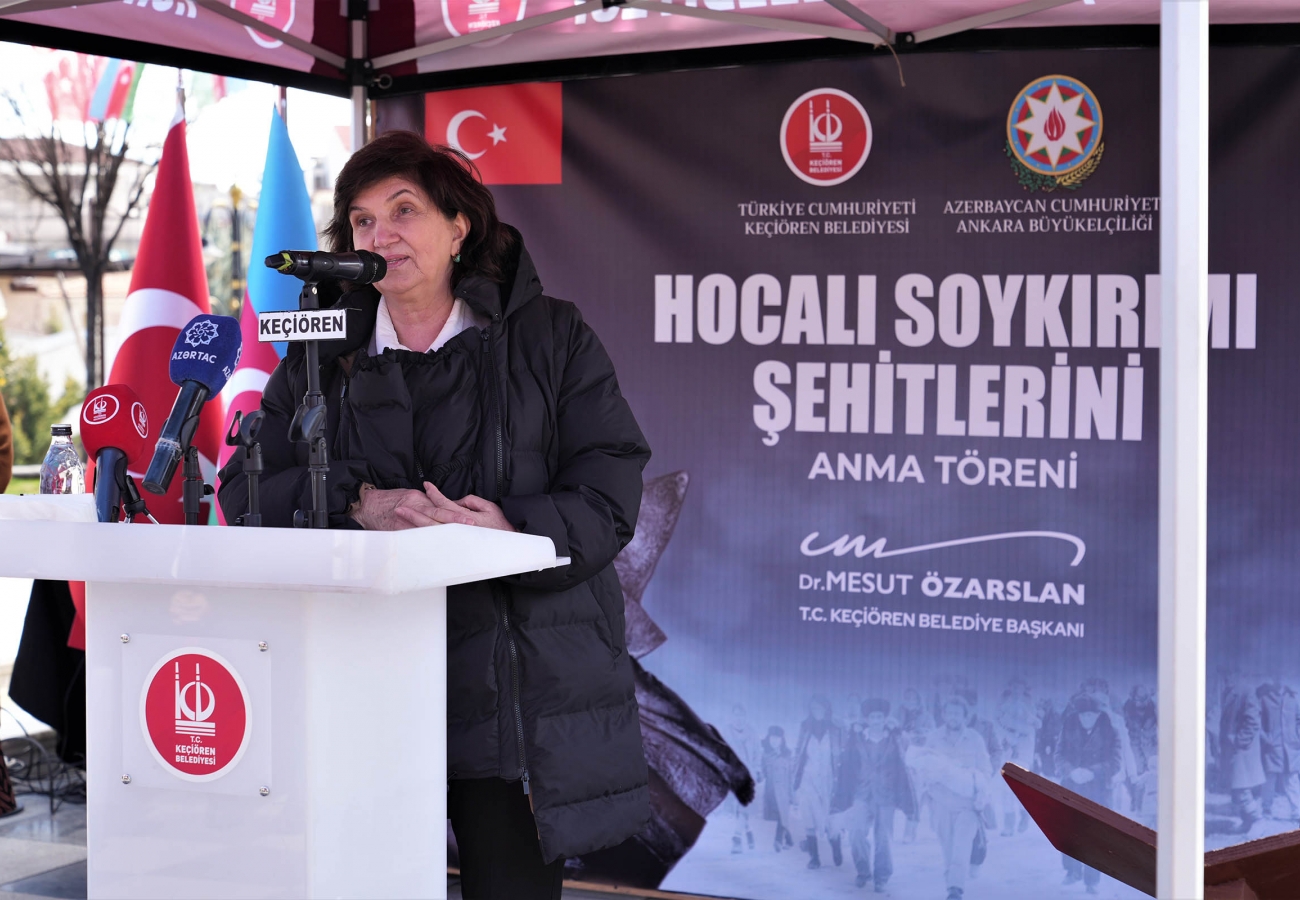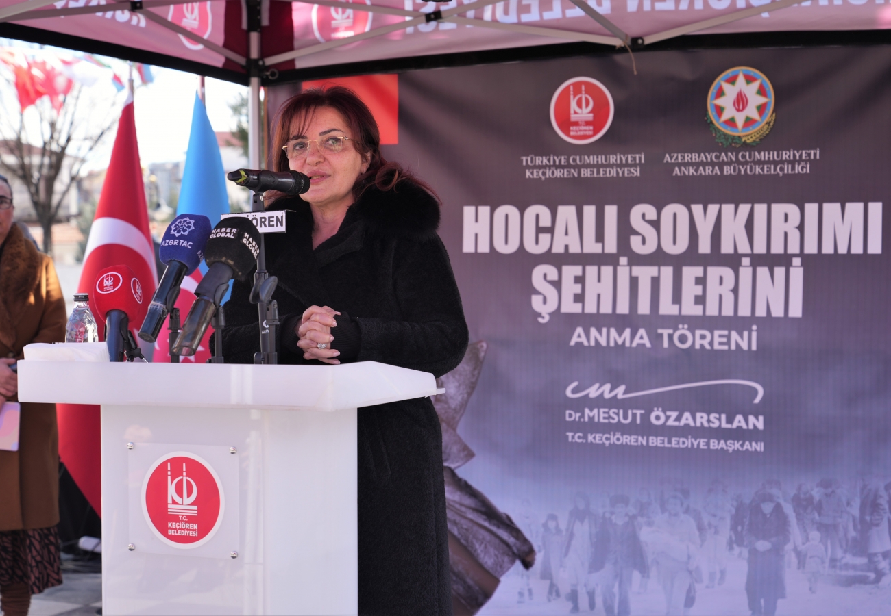 Anma programında konuşan Türkiye-Azerbaycan Dostluk İşbirliği ve Dayanışma Vakfı (TADİV) Başkanı Prof. Dr. Aygün Attar ise, “Hem Türkiye Cumhuriyeti`nin bir vatandaşı, hem de Türkiye-Azerbaycan Dostluk İşbirliği ve Dayanışma Vakfı Başkanı olarak, düzenlenen bu anma programı için Keçiören Belediye Başkanımıza ve değerli ekibine teşekkür ediyorum. Buradaki Hocalı Şehitleri Abidesi, geçmişten bugüne kadar hepimizin ortak düşüncelerinin simgesidir. Allah bir daha bizlere böyle acılar yaşatmasın.” dedi.