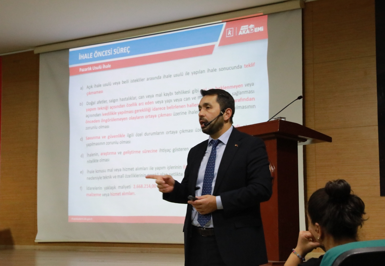 Yunus Emre Kültür Merkezi’nde gerçekleştirilen iki günlük programda, personel 4734 Sayılı Kamu İhale Kanunu, 4735 Sayılı Kamu İhale Sözleşmeleri Kanunu ile Elektronik İhale ve Kamu Alımlarının Elektronik Ortamda Yapılmasına İlişkin Uygulama Yönetmeliği hakkında bilgilendirildi. Eğitimde kamu kaynaklarının etkin, verimli ve şeffaf biçimde kullanılması için dikkat edilmesi gereken temel ilkeler ayrıntılı olarak ele alındı.