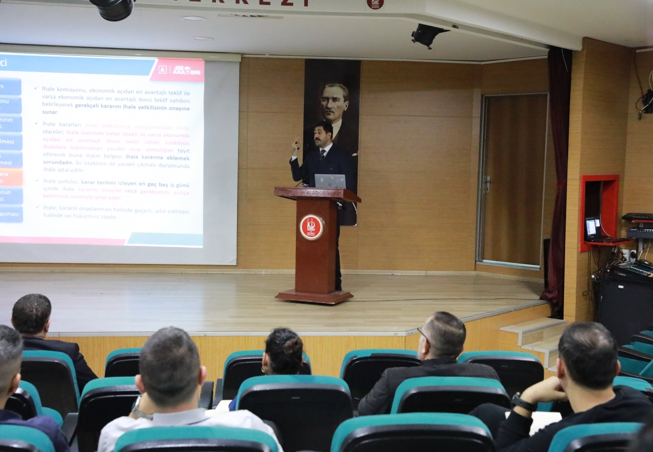 İhale Uzmanları Sinan Özesen ve Sefa Çimen eğitim programında yaptıkları sunumlarda personeli bilgilendirdi. Katılımcılara, ihale süreçlerinin planlanması, ihale dokümanlarının hazırlanması, elektronik ihale uygulamaları, tekliflerin değerlendirilmesi ve sözleşme yönetimi gibi konularda uygulamalı bilgiler aktarıldı.