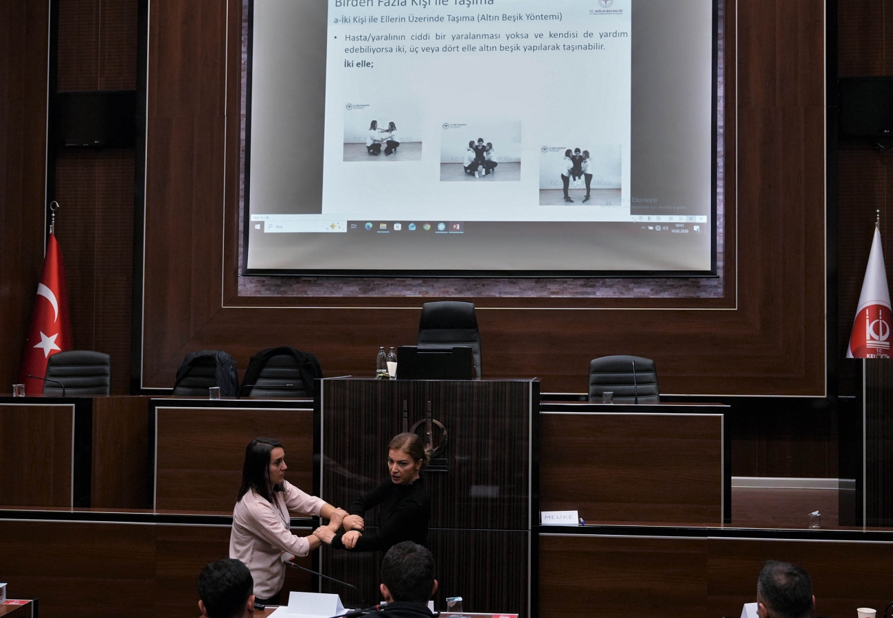 Belediye Meclis Salonu’nda gerçekleştirilen programda hemşire ve sağlık memurları tarafından katılımcılara hem teorik anlatımlar yapıldı hem de uygulamalı çalışmalar gerçekleştirildi. Eğitim süresince, doğru müdahalenin hayat kurtarıcı etkisi örnek olaylar üzerinden aktarılırken, sahada karşılaşılabilecek acil durumlara yönelik pratik uygulamalar da birebir gösterildi.