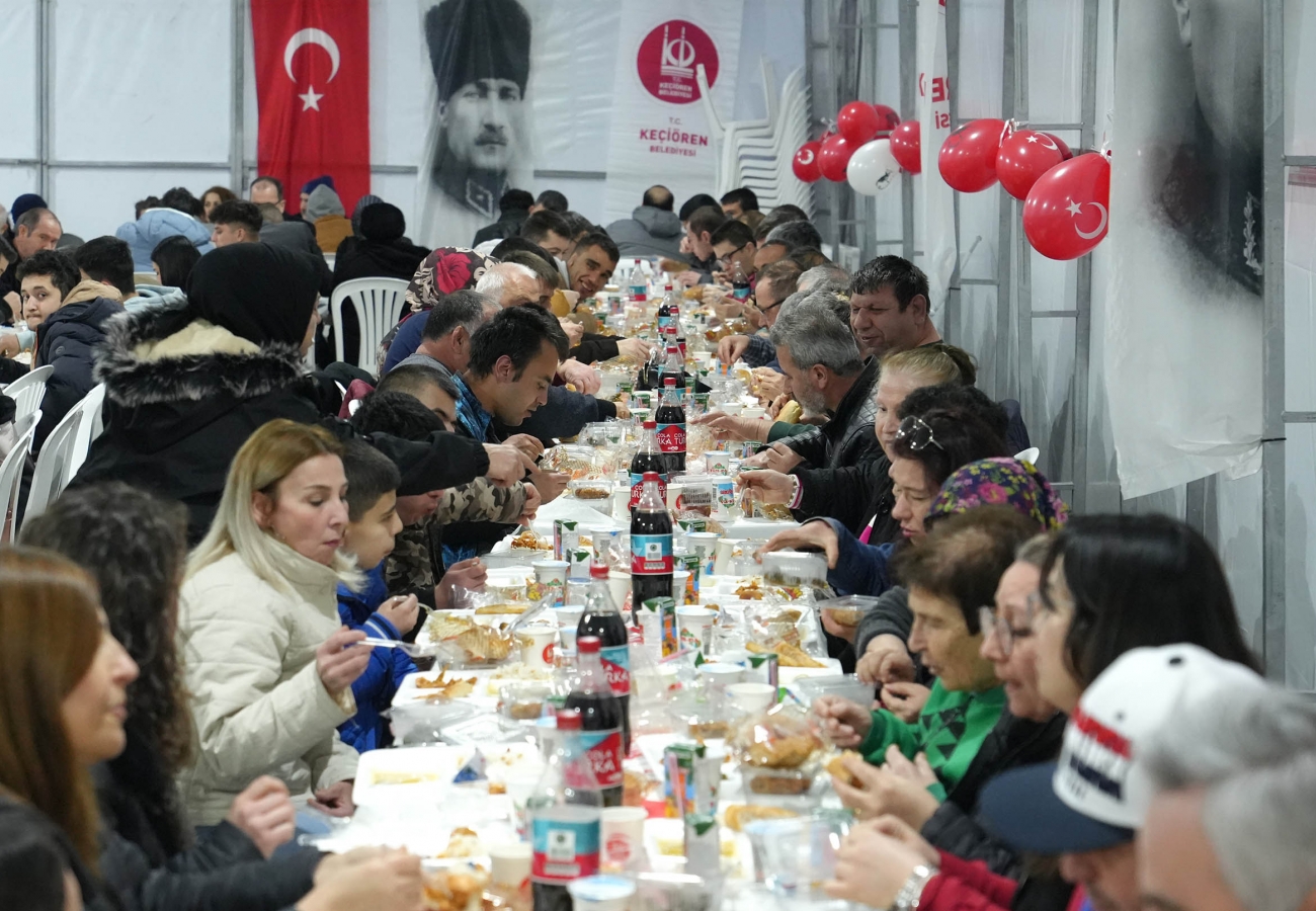 İlçenin 18 farklı noktasında kurduğu iftar sofralarıyla ramazan ayında her gün binlerce kişiyi ağırlayan Keçiören Belediyesi, özel gereksinimli bireyler ve ailelerini iftar sofrasında bir araya getirdi. Yayla Mahallesi’nde kurulan iftar çadırında özel gereksinimli bireyler, aileleri ve öğretmenleri eşliğinde ramazan ayının bereketini aynı sofrada paylaştı. Belediye personelleri tarafından servis araçlarıyla ulaşım desteği de sağlanan iftarda davetliler, samimi ve sıcak ortamda oruçlarını açtı. İlçenin farklı noktalarından gelen çok sayıda özel gereksinimli birey, iftar sofrasında bir araya gelerek ramazan ayının manevi atmosferini, birlik ve beraberlik içinde yaşadı.
