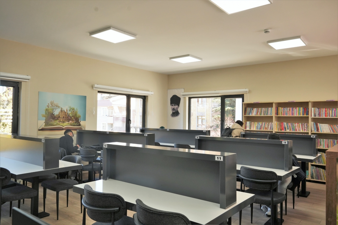 Kütüphanemiz, 14 Şubat 2026 tarihinde hizmete açılmıştır. İki katlı konağın üst katında yer alan kütüphanemiz; oturma alanı, çalışma salonu, ikram alanından oluşmakta olup 40 kişilik kapasiteye sahiptir.