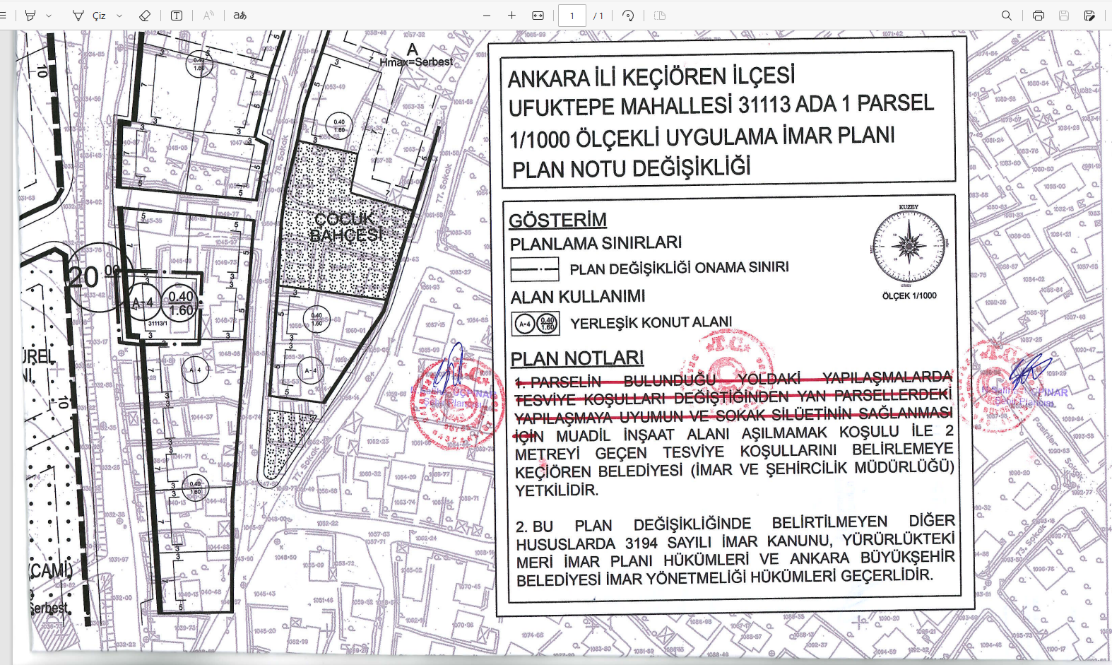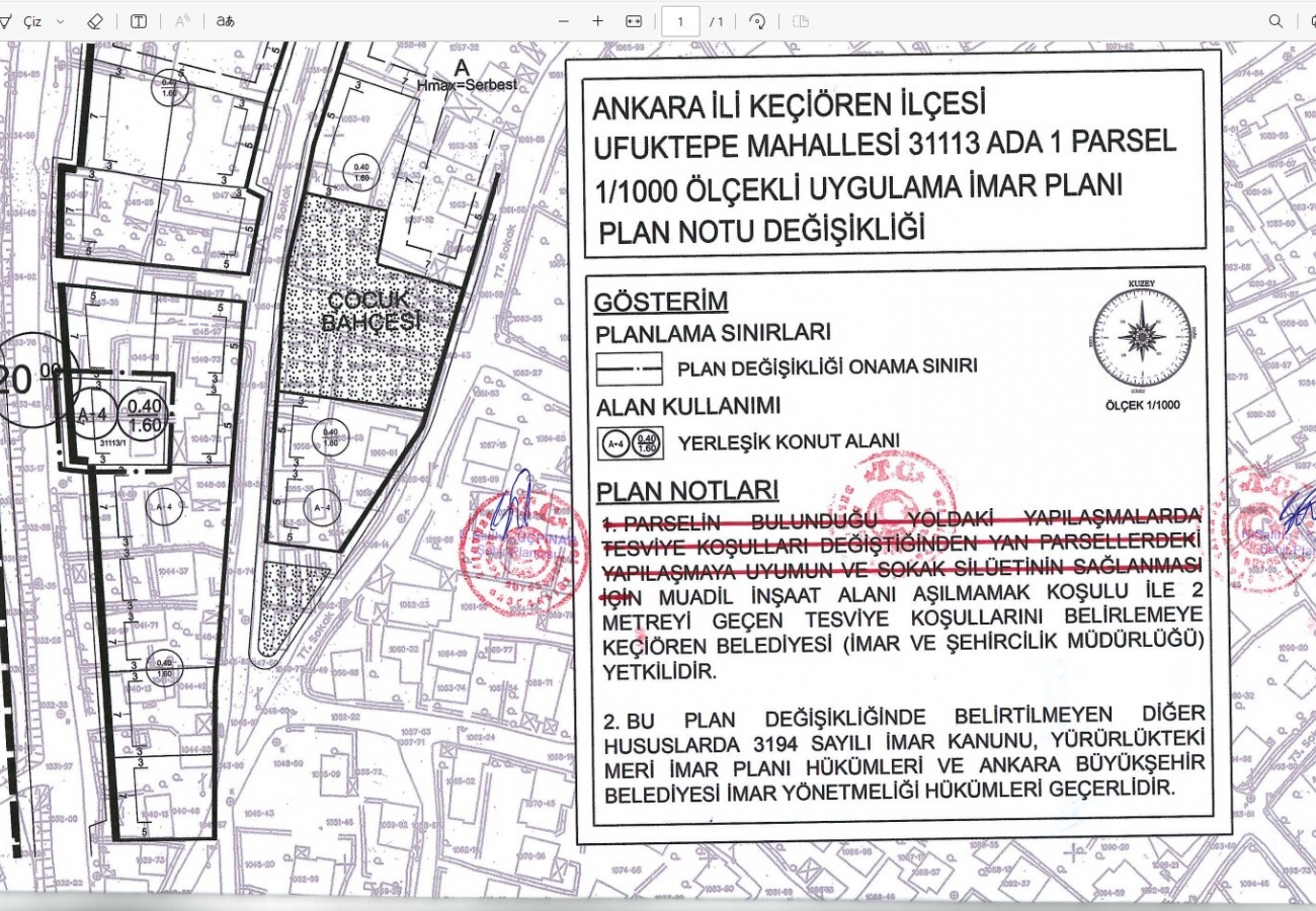 31113 ada 1sayılı parsele ilişkin 1/1000 ölçekli Uygulama İmar Planı Değişikliği |