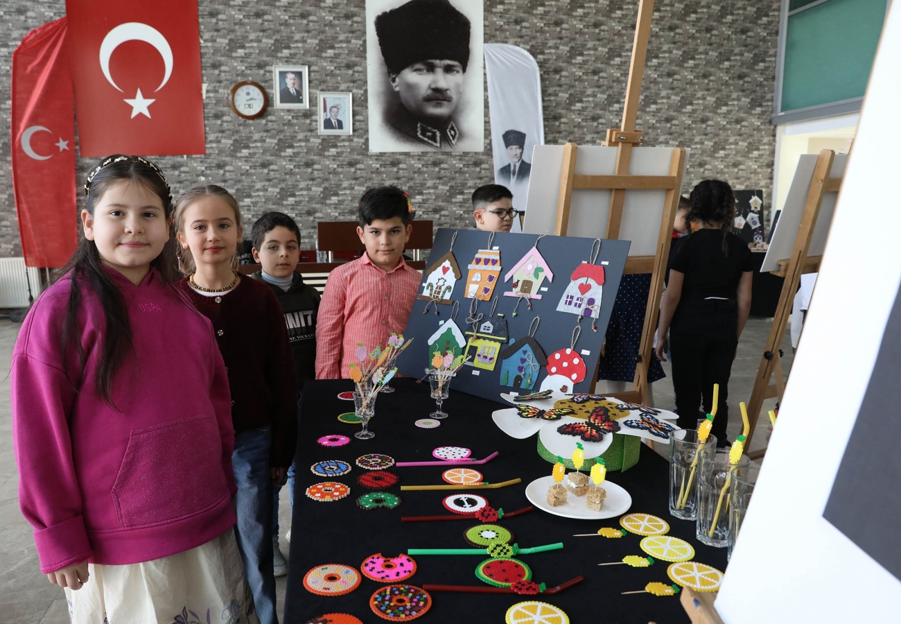 Sergide; keçe ve ebru çalışmaları başta olmak üzere el sanatları, üç boyutlu tasarımlar ile çizim ve boyama çalışmaları yer aldı. Bireysel ve grup çalışmaları formatında tasarımların yer aldığı sergide serbest çalışmalar öne çıktı. Öğrencilerin eğitim sürecinde edindikleri bilgi ve becerileri görünür kılmak amacıyla açılan sergi büyük beğeni toplarken Osman Hamdi Bey İlkokulu ile yapılan iş birliği ise atölye çalışmalarının geniş öğrenci kitlesine ulaşmasını sağladı.