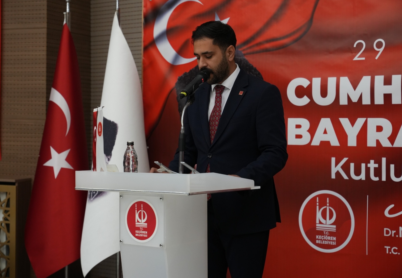 Keçiören Belediye Başkanı Dr. Mesut Özarslan, burada yaptığı konuşmada, Cumhuriyet’in birlik ve beraberlik anlayışıyla yaşatılması gerektiğini belirterek şunları söyledi: “Gazi Mustafa Kemal Atatürk ve silah arkadaşlarının fedakârlıkları sayesinde bugün burada huzur içinde yaşıyoruz. Elhamdülillah bu millet vicdanı hür, dini hür, şerefi hür yaşıyorsa sebebi budur. Cumhuriyet değerleri, milletimizin kendi iradesinin ve kültür kodlarının bir bütünüdür. Türk’üyle, Kürt’üyle, Laz’ıyla, Çerkes’iyle bir arada onurla yaşayan bir milletiz. Gelin canlar, bir olalım, iri olalım, diri olalım, Cumhuriyetimize sahip çıkalım. Yüce Mevlam birlik ve beraberliğimizi daim eylesin. Yaşasın Gazi Mustafa Kemal Atatürk, yaşasın Türkiye Cumhuriyeti, yaşasın Cumhuriyet.”