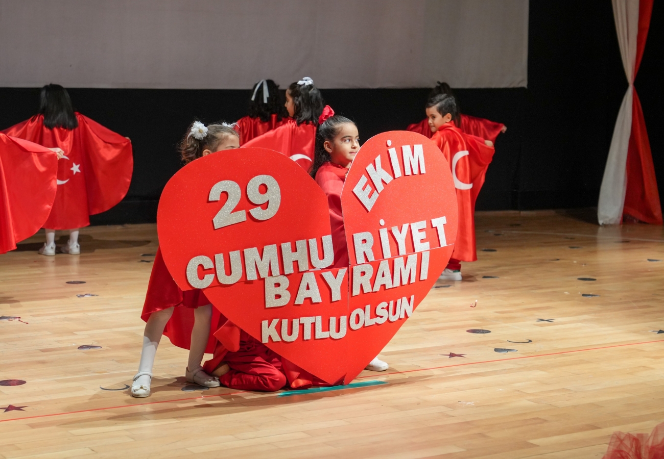 Öte yandan belediye bünyesindeki hizmet veren Ata, Gülücük ve Gül Adası Çocuk Gelişim Merkezleri’nin öğrencileri, 29 Ekim Cumhuriyet Bayramı coşkusunu sahneye taşıdı. Necip Fazıl Kısakürek Tiyatro Salonu’nda düzenlenen etkinlikte, Atatürk’ün kıymetli sözlerinin sunulduğu slayt gösterisi, Atatürk Çocukları ve Memleketim gösterileri ile ritim ve jimnastik performansları izleyicilerle buluştu. Kardelen ve Kelebek sınıflarının gerçekleştirdiği vals gösterisi ise Atatürk’ün sanata verdiği önemi bir kez daha ortaya koydu. Miniklerce gerçekleştirilen kutlama, Vatan Marşı ve Parla Marşı’nın okunmasıyla sona erdi.
