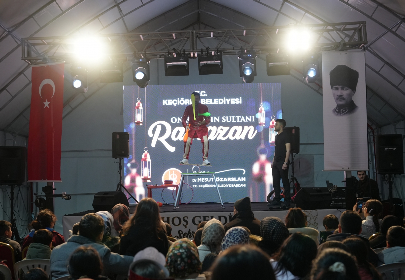 Keçiören Belediyesi’nin özenle hazırladığı program kapsamında, ramazan ayının vazgeçilmezleri arasında yer alan meddah gösterileri ve gölge oyunları sahneleniyor. Kültürel mirasın yaşatılmasına katkı sunan etkinlikler, özellikle çocuklara geçmişten günümüze uzanan bir ramazan deneyimi sunuyor. Çocuklar ve ailelere yönelik yarışmalarla meydanlar neşeyle dolarken; jonglör, bubble, kukla ve illüzyon gösterileri minik izleyicilere unutulmaz anlar yaşatıyor. Renkli sahne performansları, ramazan akşamlarını adeta bir şenlik havasına dönüştürüyor. Ayrıca etkinlik alanlarında düzenlenen sanatsal çalışmalar ve atölyelerle vatandaşlar üretmenin ve paylaşmanın mutluluğunu da deneyimliyor.