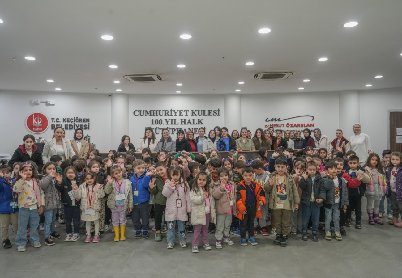 Keçiören Belediyesi Gül Adası Çocuk Gelişim Merkezi öğrencileri, Atatürk Cumhuriyet Kulesi 100. Yıl Halk Kütüphanesi’ni ziyaret ederek kitaplarla dolu atmosferi yakından tanıma fırsatı buldu. Çocukların erken yaşta kütüphane kültürüyle tanışmalarını amaçlayan gezide minik öğrencilerin heyecanı gözlerine yansıdı.
