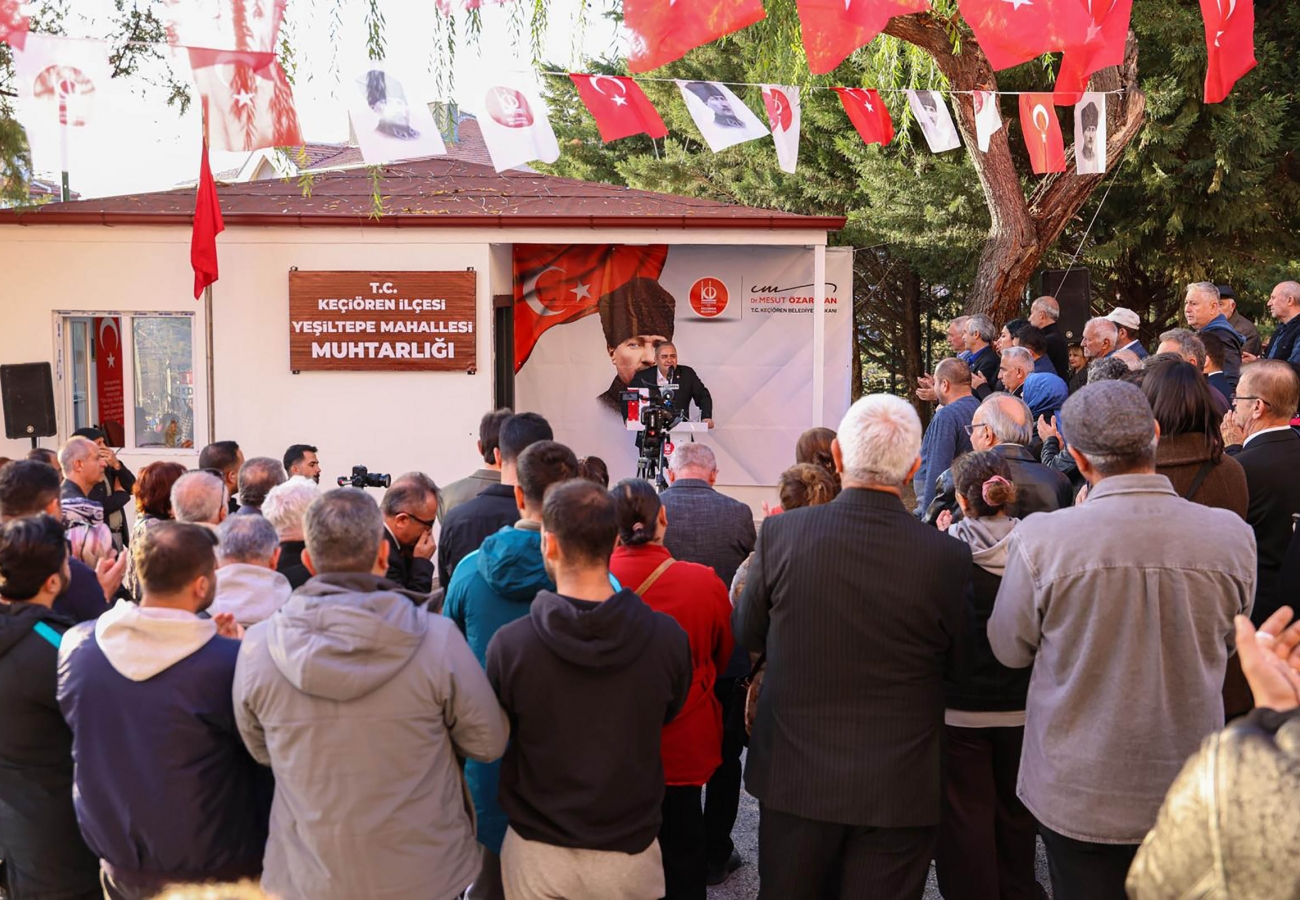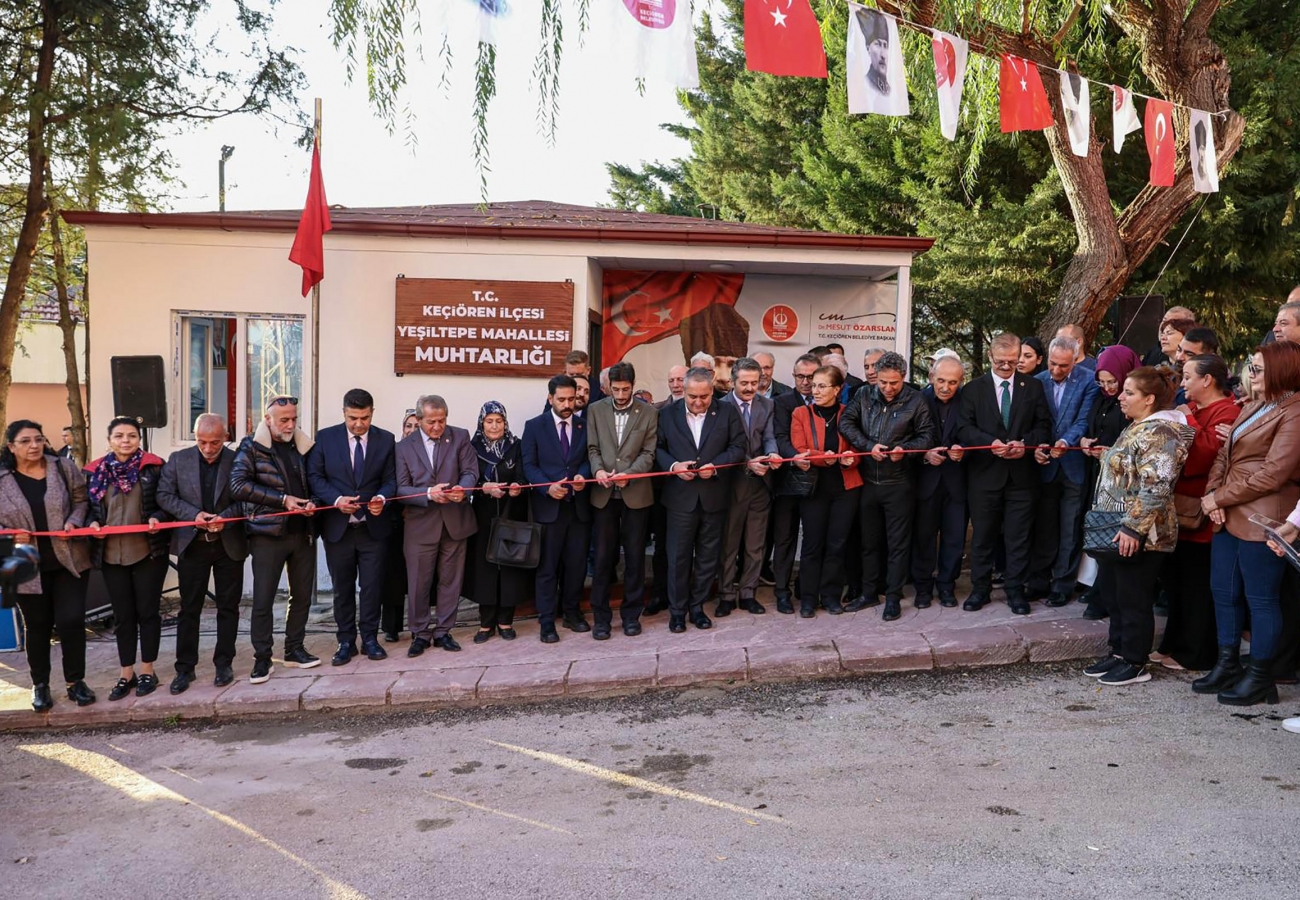 Keçiören Belediyesi tarafından yapımı tamamlanan Yeşiltepe Mahallesi Muhtarlık Binası düzenlenen törenle hizmete açıldı. Açılış töreni, Keçiören Belediye Başkanı Dr. Mesut Özarslan, CHP Keçiören İlçe Başkanı Görkem Cevahir Yıldırım, İYİ Parti Keçiören İlçe Başkanı Haluk Baran, Aşağı Eğlence Mahalle Muhtarı ve Keçiören Muhtarlar Derneği Başkanı Muhammet Ekrem Kılıç, Yeşiltepe Mahalle Muhtarı İhsan Eray Nizam, belediye meclis üyeleri, muhtarlar, Anahtar Parti Keçiören ilçe yöneticileri ve sivil toplum kuruluşu temsilcileri ile Yeşiltepe sakinlerinin katılımıyla gerçekleşti.